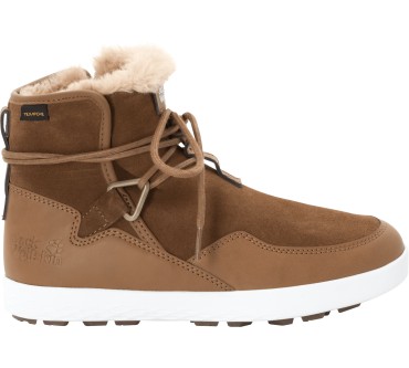 Der Auckland WT Texapore Boot W von Jack Wolfskin ist ein Winterschuh für Damen, der in den meisten Rezensionen sehr gutes Feedback von den Kundinnen bekommt. Das liegt wohl vor allem an dem gelungenen Mix aus stylischem Mokassin-Look und praktischen Eigenschaften für den Winter. Der halbhohe Stiefel ist mit hochwertigem Fleece gefüttert, sodass Ihre Füße auch bei längeren Aktivitäten im Freien warm bleiben. Die wasserdichte Texapore-Membran im Inneren sorgt im Zusammenspiel mit dem strapazierfähigen Veloursleder dafür, dass Regen, Schnee und Matsch draußen bleiben. Die Zwischensohle und das Futter sind laut Käuferinnen angenehm weich und gewährleisten einen hohen Tragekomfort. Erstaunlich empfanden die Rezensentinnen auch das sehr geringe Gewicht für einen Winterstiefel. Das Hineinschlüpfen in den Schuh funktioniert problemlos. Der Clou ist jedoch: Die runden Schnürsenkel, die einmal um den Schaft herumgehen, sehen nicht nur schick aus, sie helfen auch dabei, die Passform optimal an Ihren Fuß anzupassen. In Kombination mit der Winter Grip Sohle ist für sicheren Halt auf glattem Untergrund gesorgt.
