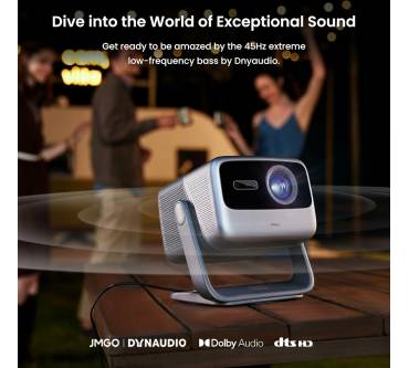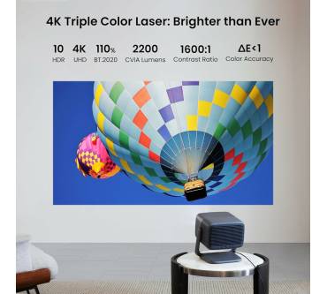 Das Bild selbst zeigt sich sehr farbintensiv und bietet die gewohnten Einstellungen. Die 4K-Auflösung wird wie fast immer üblich per Pixel-Shifting erreicht. Spiegel sorgen für ein volleres Bild, das aber nicht wirklich 4K besitzt. Auffallen wird dies aber nicht. Die Helligkeit liegt laut Messung bei Golem bei 2.800 ANSI-Lumen. So werden selbst bei Tageslicht gut erkennbare und kontrastreiche Bilder erzeugt. Abends sind drei Meter in der Diagonale locker erreichbar. Zudem wird das manchmal träge Betriebssystem erwähnt, was angesichts von nur 2 Gigabyte RAM kaum verwundert. Der Klang dagegen trumpft auf. So lässt sich der Beamer insgesamt angenehm schnell aufstellen und wieder zusammenpacken, was im Wohnzimmer sehr praktisch ist. Der Preis ist mit 1.800 Euro happig, wobei die Helligkeit die Summe rechtfertigt.