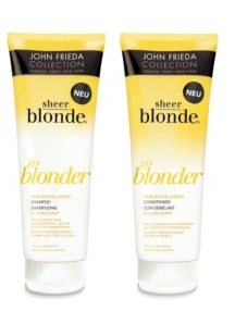 Wer blond sein will, muss leiden – zumindest auf dem Kopf. Diejenigen, die sich schon einmal die Haare heller gefärbt haben, kennen das Problem. Die Haare werden stumpf, trocknen aus und sind oftmals nur durch teure Kuren wieder milder zu stimmen. Die Salon-Experten von John Frieda schaffen mit ihrer neuesten Innovation Abhilfe. Sheer Blonde go blonder Shampoo und Conditioner ermöglichen Blondinen, egal ob natürlich, farbbehandelt oder gesträhnt, ihr Haar beim täglichen Haarewaschen schonend aufzuhellen.
