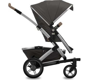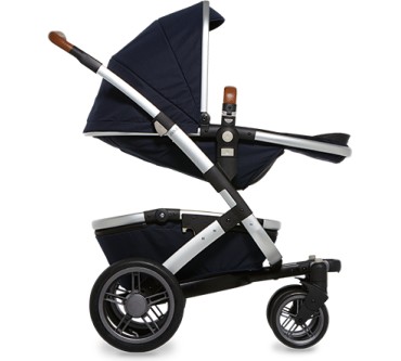 Gerade an diesem Punkt scheint für viele Eltern eine Weichenstellung zu liegen: Je höher die Wanne und der Sportsitz platziert sind, desto eher rückt der Nachwuchs auf die Höhe des Geschehens – und desto stärker sind die Kaufargumente gegen jeden anderen Kinderwagen. Das ist immer dann von Nutzen, wenn das Kleine schläft, krank ist oder später im Sitzalter, wenn es im Restaurant dabei ist und aktiv das Geschehen beobachten möchte. Der direkte Wettbewerber Bugaboo lässt sich an dieser Stelle eher auf Normalniveau ein, lässt Eltern also mehr „arbeiten“: Sie müssen sich stärker hinunterbeugen und das Kind höher heben, Blickkontakt und Füttern bei Tisch sind schwieriger, Verrenkungen beim Heben des Kindes nicht ausgeschlossen. Kann für Geschwister oder Zwillinge erweitert werden Der Geo Mono hat aber noch einige technische Besonderheiten vorzuweisen. Er passt sich nicht nur der Entwicklung der Kleinen an, indem Babywanne und Sportsitz – in beide Richtungen drehbar – mit wenigen Hangriffen auf das Alugestell aufsetzbar sind, sondern nimmt auch auf die Familienplanung Rücksicht. So führt er zunächst ein Dasein als Einzelwagen, kann aber mit Zusatzwanne zum Geschwister- oder Zwillingswagen zum Joolz Duo oder Twin für altersunterschiedliche oder -gleiche Kinder umgerüstet werden. Darüber hinaus wird er mit einem XL-Einkaufskorb geliefert, der seinesgleichen sucht. Höchstens der Bugaboo Donkey bietet noch eine solch praktische Gepäckfunktion, solange er in seiner Einzelkind-Konfiguration unterwegs ist.
