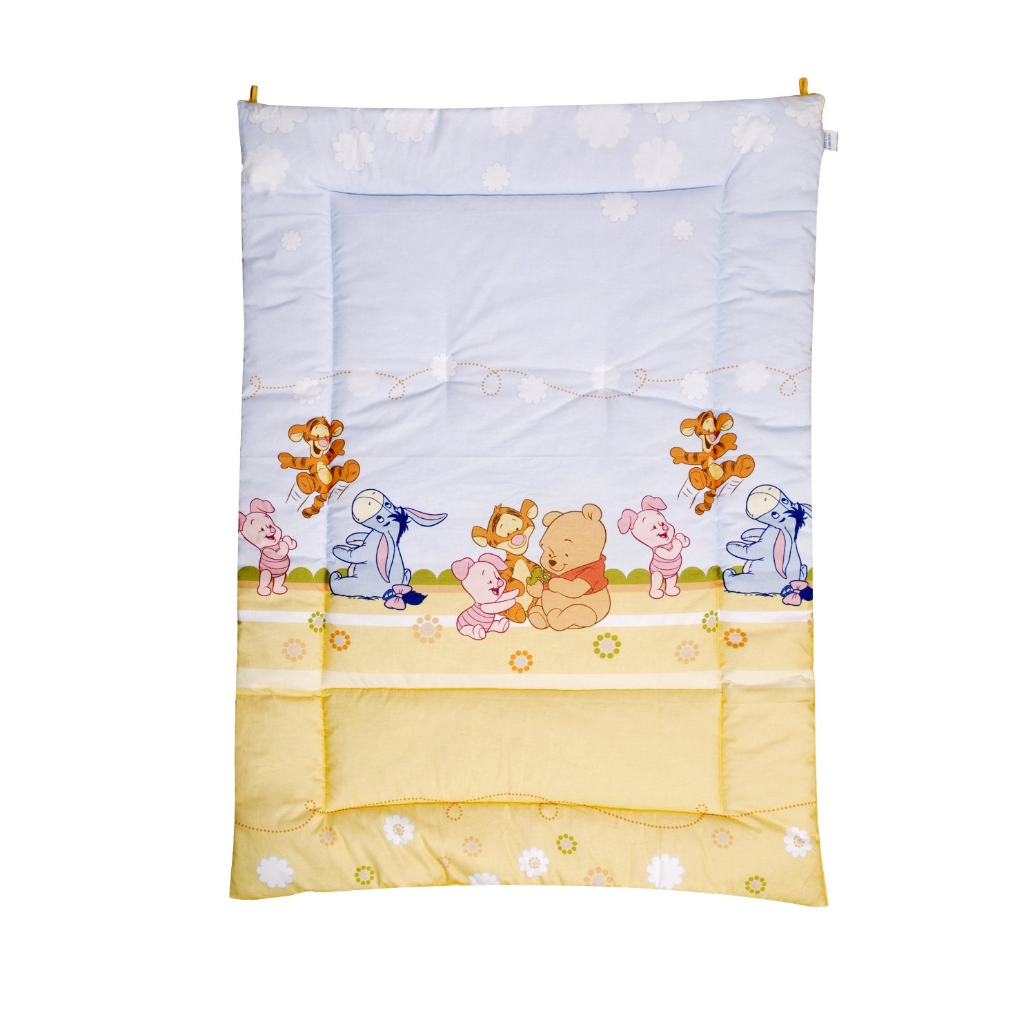 Konkret erreicht das Julius-Zöllner-Produkt in Länge und Breite 135 x 95 Zentimeter, laut Datenblatt ist sie im Übrigen waschbar bei 30 Grad und sogar trocknergeeignet. Und Trocknergänge scheint sie auch klaglos zu überstehen, wie zufriedene Kunden berichten: Die Farben der Baby-Pooh-Motive erstrahlten auch nach etlichen Wäschen in den gewohnten Farben, auch die Polsterung bliebe in ihrer Dichte und Gleichmäßigkeit erhalten. Davon profitiert der Nachwuchs vor allem bei den ersten Sitz- und Stehversuchen, wenn kleinere Stürze via Krabbeldecke geschmeidig abgedämpft werden.