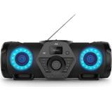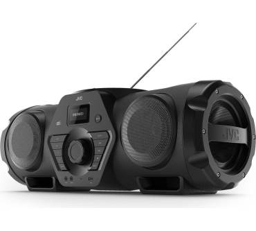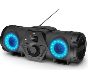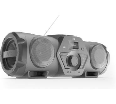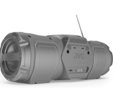 JVCs Ghettoblaster ist eine imposante Erscheinung, weiß jedoch nicht nur durch sein Aussehen zu überzeugen. So stehen Ihnen eine Vielzahl von Wiedergabewegen zur Verfügung, angefangen von je einem analogen und digitalen Radiotuner, über das CD-Fach bis zur Möglichkeit externe Geräte abzuspielen, etwa per AUX-Anschluss oder Bluetooth. Dank zweier 6,3 mm-Anschlüsse lassen sich zudem Mikrofon und Gitarre verstärken. Die Ausstattung wird durch eine hohe Mobilität dank Akkubetrieb und Tragegurt abgerundet. Der Haken: den Akku müssen Sie für rund 50 Euro bei JVC extra kaufen, ansonsten bleibt das Gerät ans Netz gebunden. Neben der Vielseitigkeit des RV-NB300DAB loben verschiedene Fachmagazine auch den Klang der Boombox, weshalb die aufgerufenen 300 Euro Neupreis (ohne Akku) nicht zu hoch erscheinen.
