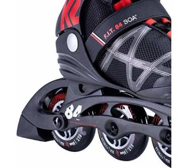 Kunden loben das Schnellschnürsystem des F.I.T. 84 Boa von K2, auch wenn dieses anstelle eines Drahtseils nur eine feste Schnur aus Nylon hat. Die Nylonschnur soll jedoch sehr stabil sein. Über ein Drehrad wird es fest gespannt, damit der Schaft sicher am Fuß sitzt. Mit einer Rollengröße von 84 Millimetern wird dieser Inliner für Beginner und leicht fortgeschrittene Nutzer empfohlen. Die Rollen sind laut Kunden leichtgängig. Sie sind an einem robusten Rahmen aus Aluminium befestigt, der das Gewicht dieses Modells gering halten soll. Tester eines Online-Magazins empfinden es allerdings als etwas schwer. Außerdem bemängeln sie die Breite der Lasche. Die Passform wird jedoch insgesamt als sehr gut beschrieben.