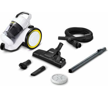 Ohne Zubehör wiegt der beutellose Staubsauger Kärcher VC3 4,4 Kilogramm, mit Fugen- und Bodendüse kommt er auf 5,9 Kilogramm und verspricht damit eine leichte Handhabung. Aufgrund des geringen Gewichts fällt er allerdings gerne einmal um, wie einige Nutzer berichten. Er punktet dafür mit einer starken Saugleistung (700 Watt Aufnahmeleistung) und einem geräuscharmen Betrieb mit 76 Dezibel Geräuschentwicklung. Der Staubbehälter fasst solide 600 Milliliter und lässt sich Rezensionen zufolge einfach öffnen und ohne Staubentwicklung leeren. Zurzeit zahlen Sie für den Kärcher-Sauger rund 120 Euro – ein guter Preis für eine gute Leistung.