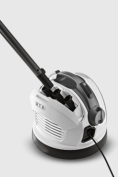 Das pfiffige „Quick Click“ System wiederum macht die Handhabung des Zubehörs recht komfortabel. Letzteres ist in einem eigenen Fach direkt am Gerät untergebracht und kann, ohne dass sich der Benutzer bücken muss, einfach je nach Bedarf in Sekundenschnelle an das Saugrohr angeklickt werden. Darüber hinaus ist der Kärcher dank eines HEPA-12-Filters für Allergiker geeignet, die Staubaufnahme erfolgt in Beuteln, die, so lehrt die Erfahrung, speziell von Allergikern Staubbehältern gern vorgezogen werden – Letztere wirbeln beim Entleeren nicht selten viel Staub auf.