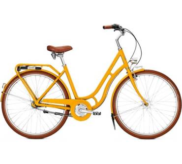 „... Angenehmer Einstieg, leichtes Steuern, souveräne Fahrleistungen. Die 7-Gang-Schaltnabe arbeitet leichtgängig. Die Verzögerung ist gut, wenn beide Bremsen zusammenarbeiten. Wünschenswert: eine zweite Handbremse. Lässt Passanten lächeln: DingDong-Glocke. Feiner Gleiter im Nostalgie-Look, prima für Stadt- und Kurzstrecken & genüssliches Fahren!“