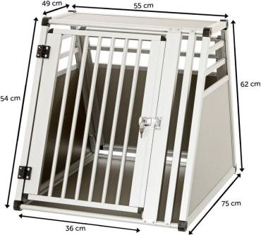 Wer für das vierbeinige Familienmitglied eine sichere Transportoption im Kofferraum sucht, weil der Hund stets im Auto mitfährt, alleine oder gar neben Gepäckstücken, der ist mit der Karlie Galant Alu-Transportbox (31011) auf dem richtigen Weg. Die per Schlüssel verschließbare Hundetransportbox für kleinere Hunde aus Aluminium und grauen Hartfaserplatten passt in die meisten PKW-Kombis und lässt neben sich noch Platz im Kofferraum.