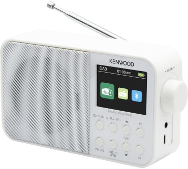 Dank analogem und digitalem Empfang lässt sich mit dem Radio Kenwood CR-M30DAB im Grunde jeder lokale Sender anhören. Insgesamt 40 Speicherplätze sollten genügen, um alle Wunschprogramme und mehr griffbereit zu halten. Außerdem lässt sich auch sonst fast alles abspielen. Mit Bluetooth ist das Smartphone einfach zu verbinden und wird ebenfalls zur Musikquelle. Ansonsten gibt es lediglich noch einen Kopfhöreranschluss, der aber beispielsweise als Ausgang zur Stereoanlage genutzt werden kann. Mit dem integrierten Akku spielt das Radio auch im Garten. Leider sind 7 Stunden Spieldauer und 4 Stunden Ladezeit alles andere als beeindruckende Werte. Ein Batteriefach wäre hier wohl die bessere Entscheidung gewesen. Dass der Klang allenfalls den Mindestanforderungen genügt, dürfte angesichts der geringen Größe und des kleinen Preis wenig überraschend sein.