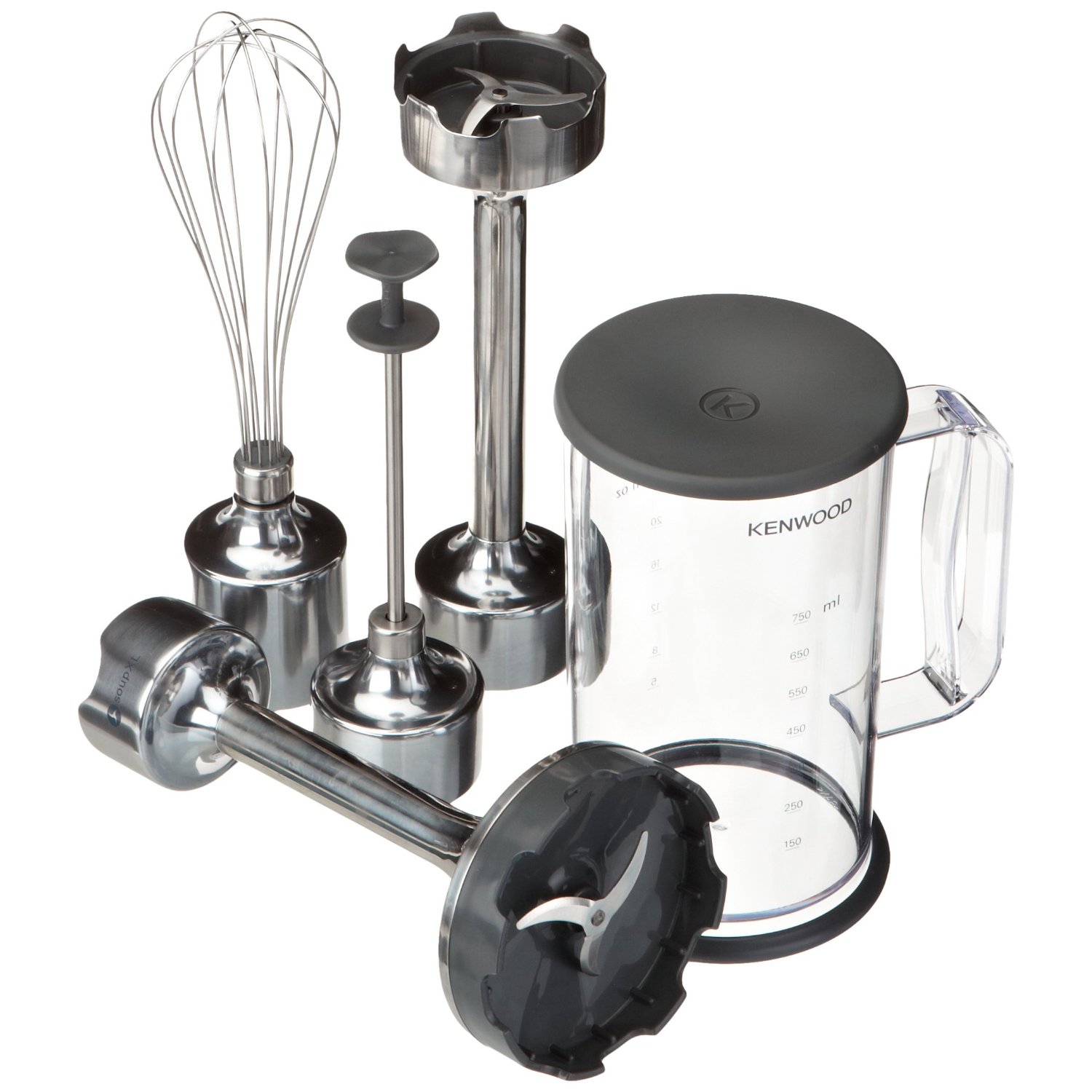 Der Kenwood wird dem selbstgestellten Anspruch auf semiprofessionelle Qualität gerecht, wie die Kundenrezensionen zum Basismodell beweisen, und stellt damit für ambitionierte Hobbyköche ein sehr gutes Instrument für die Küchenarbeit dar. Die Basisversion Triblade HB 856 mit Schneebesen und Mixbecher ist aktuell für rund 70 EUR (Amazon) zu haben, und wer meint, sowohl den Barmixer- als auch den SoupXL-Aufsatz gut gebrauchen zu können, ist für die S-Version mit 95 EUR (Amazon) dabei.