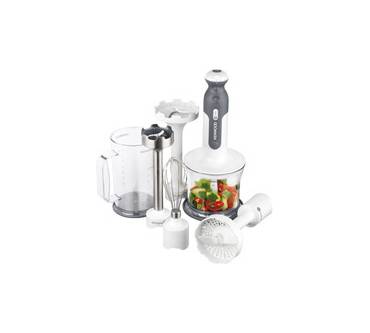Ein Zerkleinerer mit einem Fassungsvermögen von 0,5 Litern) sowie ein Messbecher (0,75 Liter) runden die Ausstattung des Triblade Hb 724 gelungen an. Die Leistung wiederum liegt mit 700 Watt im oberen Spektrum, die Geschwindigkeit lässt sich in 5 Stufen plus einer Turbostufe regeln. Das aus Edelstahl sowie Kunststoff gefertigte multifunktionale Küchenset kommt trotz des reichen Zubehörs relativ günstig: Für 77 Euro (Amazon) können sich Hobbyköche effizient auf alle Eventualitäten beim Kochen vorbereiten.