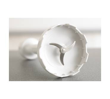 Zum Zubehör des Triblade HB 724 gehört neben einem Schneebesen auch ein Mixstab, der gleich mit drei anstatt des häufig in preiswerten Modellen vertreten einzelnen Edelstahlmessers ausgestattet ist. Dass dies auch unmittelbare Vorteile beim Mixen mit sich bringt, versteht sich von selbst. Ein weiterer Mixstab wiederum besitzt einen extra breiten Fuß, der noch effizienter das Herausspritzen von Saucen & Co verhindert, wenn das gerät direkt im Topf eingesetzt wird. Mit dem Zubehörteil lassen sich aber auch Kartoffeln stampfen oder Gemüse zu sämigen Suppen verarbeiten.