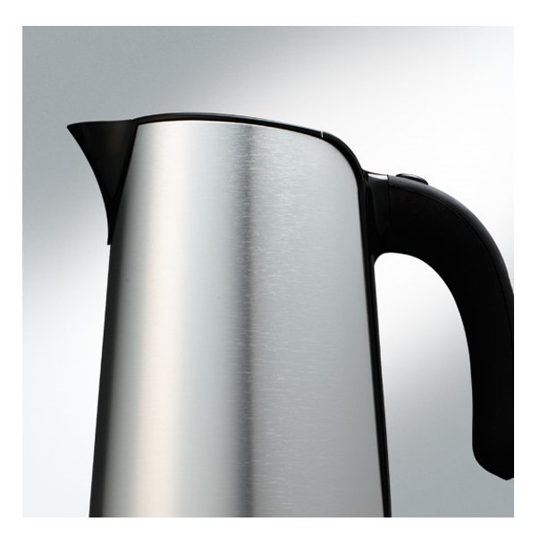 Das Design schließlich ist recht schlicht gehalten, das Material dafür einen Tick edler als normal: Der Wasserkocher besteht nämlich hauptsächlich aus Edelstahl, das zudem matt ausfällt und gebürstet ist. Dies hat den großen Vorzug, dass das Gerät weniger häufig geputzt und gewienert werden muss als seine schick-edlen Hochglanz-Kollegen aus Edelstahl. Die Leistungsaufnahme, auch dies sei der Vollständigkeit halber zum Schluss noch erwähnt, liegt bei 2.400 Watt. Der relativ hohe Wert stellt eine zügige Erhitzung des Wassers in Aussicht.