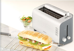 Mit dem TTM 312 kann aber auch lediglich eine Seite getoastet werden, etwa beim Rösten von Bagels, der Bräunungsgrad kann dabei variabel in acht Stufen eingestellt werden. Für Toastgut, das nur leicht geröstet werden soll, steht außerdem eine besonders schonende Temperatureinstellung zur Verfügung.