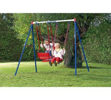 Schaukeln sind jahrelange, robuste Begleiter, die hohe Erwartungen an Qualität und Haltbarkeit erfüllen sollen – und deshalb nehmen Käufer neben dem Schaukelspaß auch Verarbeitung, Material und Standfestigkeit in den Blick. Bei der Basicschaukel handelt es sich um ein Modell mit zwei Schaukelelementen für Heimgärten, die für die Abmessungen von 230 x 202 x 185 Zentimetern ausreichend Platz bereitstellen. Das Gestell besteht aus polyesterbeschichtetem Stahlrohr und lässt sich laut Hersteller mittels vier Bodenanker in den Untergrund einbetonieren. Bestückt ist die Schaukel mit einer zweisitzigen Gondel aus Kunststoff plus Sicherheitsaufhängung sowie einer Brettschaukel mit verstellbaren Seilen und Sicherheitshaken. Nach Auskunft des Herstellers liegt die Belastbarkeit der Brettschaukel bei 50 Kilogramm, befindet sich also im Vergleich zu den anderen Kandidaten dem Markt im ordentlichen Normbereich. Die Gondel wiederum darf entsprechend doppelt hoch belastet werden – bei 100 Kilogramm ist allerdings dann Schluss.Stabil, haltbar und erweiterbar