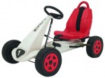 Hochwertige Gokarts bieten neben einer Reihe von funktionalen Features auch Komfortmerkmale, eins davon ist die Bereifung. Luftbereifte Modelle versprechen einen Zuwachs an Fahrkomfort vor allem jenseits befestigter Straßen, federn besser, gelten als haltbarer und bieten im Übrigen auch mehr Spielwert. In diesen Punkt gibt sich der Daytona vergleichsweise bescheiden, denn er setzt auf Vollgummi - allerdings offenbar zur Zufriedenheit der Kundschaft. Bei seinen Abmessungen von 130 x 61 x 60 Zentimetern in Länge und Breite und einem Gewicht von 11 Kilogramm richtet sich der Daytona an die Altersgruppe der etwa Vier- bis Achtjährigen oder Kinder ab einer Körpergröße von 100 Zentimeter, allerdings zieht der Hersteller bei 130 Zentimetern eine klare Obergrenze.Zuschaltbarer Freilauf