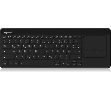 Mit ihrem eingebauten Touchpad kann die KeySonic-Tastatur auch als Mausersatz herhalten. Das kabellose Tastenbrett ist von daher optimal, wenn Sie eine Möglichkeit suchen, von der Couch aus einen PC oder ein Notebook zu steuern – zum Beispiel, wenn diese an einen Fernseher angeschlossen sind. Die Bauweise ist relativ flach, aber dank vernünftiger Tastenabstände dürfte der Bedienkomfort trotzdem einigermaßen gut sein. Der fehlende Ziffernblock stört bei zahlenlastigen Arbeiten wie Banking oder Tabellenkalkulationen. Mangels Hintergrundbeleuchtung ist die KSK-5220BT nicht für dunklere Räume geeignet. Die Verbindung per Bluetooth funktioniert zuverlässig und bleibt stabil. Einige Rezensenten klagen allerdings über merkliche Eingabeverzögerungen.