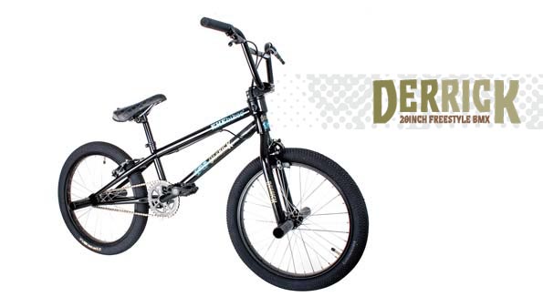 Das Derrick ist ein für Einsteiger sehr geeignetes BMX-Bike, das mit allem ausgerüstet ist, was man braucht. Nur den guten Gleichgewichtssinn muss man selbst mitbringen.