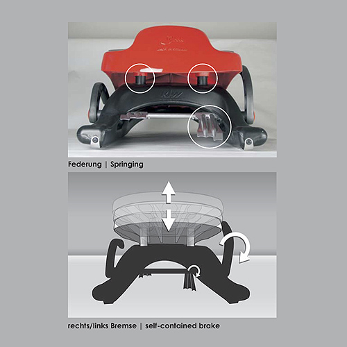 Auch wenn man nicht unbedingt ein so empfindliches Hinterteil besitzt wie die Prinzessin oder der Prinz auf der Erbse, hat der Snow Speed von KHW sicherlich jede Menge Potenzial, die rasante Abfahrt auf der Rodelpiste merklich angenehmer für besagtes Körperteil zu machen als die meisten herkömmlichen Bobs. Denn nicht nur, dass die Sitzfläche ab Werk bereits gepolstert ist – bei vielen anderen Herstellern müssen Sitzpolster separat erworben werden. Die komplette Sitzfläche liegt außerdem auf einer Federung auf, die die gröbsten Schläge des Untergrundes schluckt.