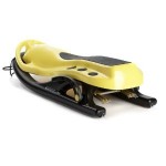 Der Snow Speed ist daher auf jeden Fall ein Kandidat für ruppigere Rodelpisten oder auch für Buckelpisten, auf denen andere Kunststoff-Bobs ihre Fahrer meistens ziemlich durchschütteln und für jede Menge blaue Flecken sorgen. Darüber hinaus jedoch hat der Snow Speed eine außergewöhnliche Form. Denn anstatt dass der Bob über seine Gesamtfläche plan auf dem Boden aufliegt, ist der vordere Teil leicht aufgebogen. An kleineren Hindernissen auf der Strecke stößt daher der Snow Speed nicht so schnell an. Und wer er vorzieht, den Bob zu einem Skeleton umzumünzen und im Liegen den Hang heruntersaust, darf sich über viel weniger aufwirbelnden, die Sicht versperrenden Schnee freuen.