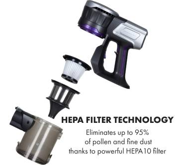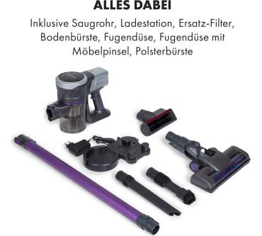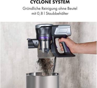 Der Akkusauger Clean Butler 4G Silent verspricht eine wendige und flexible Nutzung. Er wiegt etwa zwei Kilogramm und ist damit angenehm leicht. Das geringe Gewicht vereinfacht nicht zuletzt die Nutzung an höher gelegenen Arealen und den Transport über Treppen. Dem Paket liegen neben der Hauptbodendüse mehrere Zubehörteile bei, darunter eine Bürste für Polster, eine Fugendüse und ein Möbelpinsel. Das Gerät lässt sich damit für zahlreiche Reinigungsarbeiten nutzen – leider nicht allzu lange am Stück. Die Batterie hält maximal 35 Minuten. Das gilt für die geringe Saugstufe, mit voller Kraft arbeiten Sie gerade einmal 20 Minuten. Das ist vergleichsweise kurze, sodass der Sauger für große Flächen weniger geeignet ist. Die Saugkraft und der 700 Milliliter große Behälter machen ihn allerdings als Zweitgerät oder für schnelle Putzarbeiten zwischendurch interessant. Für einen Preis von rund 90 Euro gibt es hier solide Eigenschaften. Etwas mehr Ausdauer bietet etwa der Klarstein CleanButler 3G.