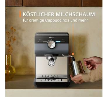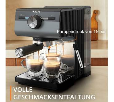 Die Bedienung der Krups-Siebträgermaschine ist einfach. Bevor Kaffee zubereitet werden kann, ist jedoch eine längere Wartezeit von bis zu einer Minute für das Aufheizen nötig.