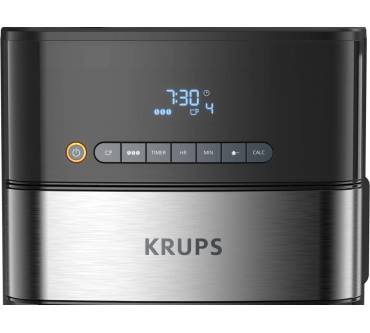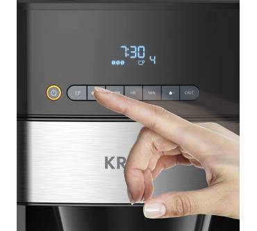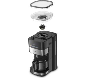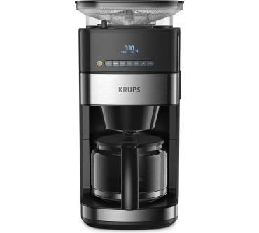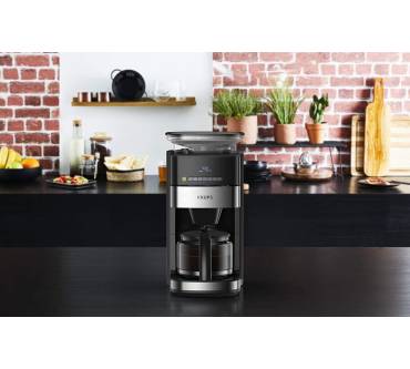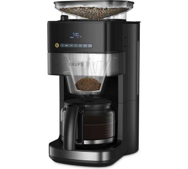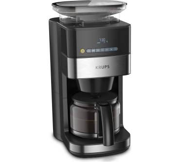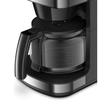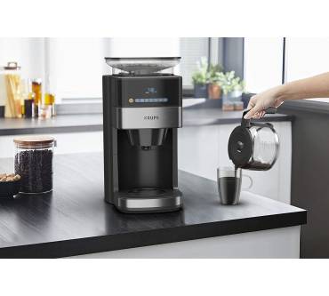 Die Kaffeemaschine besticht durch ihr integriertes Mahlwerk und einen Timer. Sie können wahlweise ganze Bohnen oder Kaffeepulver verwenden. Das mattierte Edelstahl-Design fügt sich zeitlos in jede Küche. Das digitale Bedienfeld mit LED-Display ist intuitiv gestaltet, wie Nutzer bestätigen. Zur Auswahl stehen drei verschiedene Stärkegrade von mild bis kräftig, wodurch Sie stets auf individuelle Geschmacksvorlieben eingehen können. Dank des praktischen Timers können Sie den Brühvorgangs programmieren und somit beispielsweise morgens vor der Arbeit von frischem Kaffeeduft geweckt werden. Zudem gibt es eine 30-minütige Warmhaltefunktion. Das integrierte Kegelmahlwerk liefert gleichmäßige Mahlergebnisse bei drei Einstellungen von grob bis fein. Es fasst bis zu 180 Gramm Kaffeebohnen, um die Glaskanne mit bis zu 1,25 Litern frisch gebrühtem Kaffee füllen zu können. Rezensenten weisen darauf hin, dass die Maschine beim Brühvorgang stets das gesamte Wasser im Tank verbraucht und man darauf achten muss, nur die benötigte Menge einzufüllen. Kritik liest man hinsichtlich des vergleichsweise langsamen Kochvorgangs. Die abnehmbaren Teile lassen sich einfach reinigen.