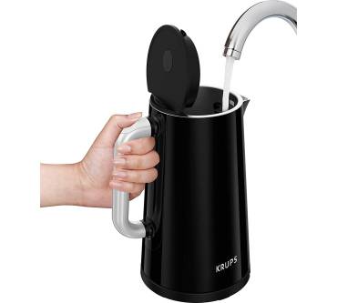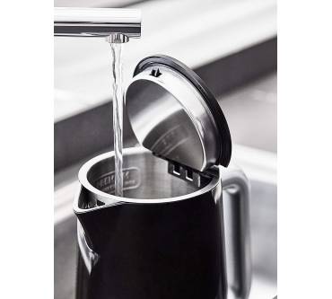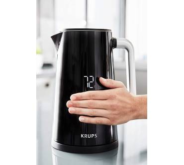 Der edle 1,7-Liter-Wasserkocher mit Digital-Display und Live-Temperaturanzeige gehört zur Frühstücksserie „Smart'n Light“ und kann bei Bedarf mit Toaster und Filterkaffeemaschine ergänzt werden. Er eignet sich ideal für Teetrinker und liefert Ihnen stets die perfekte Wunschtemperatur. Sie können zwischen fünf Einstellungen von 40 bis 100 Grad Celsius wählen und präzise auf sämtliche Teesorten eingehen. Einfaches Wasseraufkochen gelingt über die One-Touch-Bedienung ebenfalls zügig. Die Bedienknöpfe sind Anwendern nach etwas schwergängig. Der Deckel öffnet sich per Knopfdruck automatisch für einfaches Befüllen, die Öffnung könnte Nutzern nach etwas größer ausfallen. Eine Außenskala gibt es nicht, Sie können den Füllstand nur innen ohne Zwischenschritte ablesen. Neben der Live-Temperaturanzeige sind weitere Highlights die 30-Minuten-Warmhaltefunktion mit Abschaltautomatik, das kühlbleibende Gehäuse, welches Verbrennungsgefahr verhindert und die nahtlose Edelstahl-Innenauskleidung. Letztere ermöglicht eine leichte Innenraum-Reinigung und verhindert, dass Wasser mit Plastik in Berührung kommt.