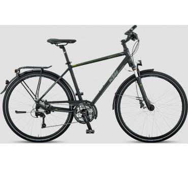 Das KTM Veneto Light Disc (Modell 2015) ist ein vielseitiges Trekkingrad, das für Damen und Herren konzipiert wurde. Es verfügt über einen leichten Aluminiumrahmen und eine Federgabel, die für Komfort auf verschiedenen Untergründen sorgt. Die 30-Gang-Kettenschaltung von Shimano Deore XT ermöglicht präzise Gangwechsel, während die hydraulischen Scheibenbremsen für zuverlässige Bremskraft sorgen. Ausstattungsmerkmale wie Gepäckträger, Lichtanlage und Schutzbleche machen es alltagstauglich. Mit einem Gewicht von 14,5 kg und einer zulässigen Gesamtbelastung von 118 kg ist es sowohl für den täglichen Einsatz als auch für längere Touren geeignet.