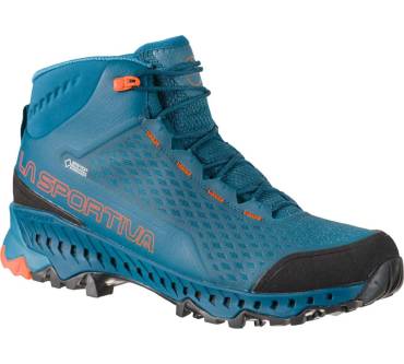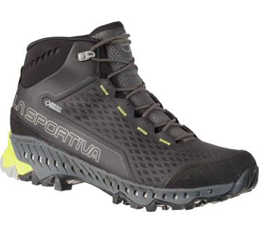 Mit dem Stream GTX präsentiert La Sportiva einen innovativen, äußerst leichten Bergschuh, der vor allem durch seinen hohen Tragekomfort und seine hervorragende Belüftung überzeugen kann. Dank der Gore-Tex Surround Technologie ist der Stream GTX zuverlässig wasserdicht, aber wesentlich atmungsaktiver als man es von herkömmlichen Gore-Tex Membranen gewohnt ist. Die Besonderheit besteht darin, dass über Belüftungskanäle auf der Längsseite der Zwischensohle überschüssige Wärme und Wasserdampf entweichen können. So bleibt der Fuß auch bei hohen Temperaturen und anstrengenden Einsätzen angenehm trocken. Die griffige Vibram XS Trek Wandersohle sorgt in Kombination mit der dämpfenden EVA Zwischensohle indes für ein komfortables Laufgefühl und einen sicheren Tritt auf den verschiedensten Untergründen. Der hohe Schaft bietet darüber hinaus Schutz und ein Extra an Stabilität. Alle Bergbegeisterten, die gerne schnell unterwegs sind, könnten mit diesem Modell durchaus glücklich werden.