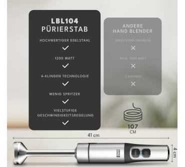 Der Stabmixer punktet mit seiner hohen Leistung und der Fähigkeit, Zutaten fein zu pürieren. Die einfache Handhabung sowie die gute Reinigung werden ebenfalls positiv hervorgehoben. Viele Nutzer schätzen die stabile Verarbeitung des Geräts und seine leisere Betriebslautstärke im Vergleich zu anderen Produkten. Allerdings gibt es auch negative Stimmen zu hören: Einige empfinden die Leistung als unzureichend für bestimmte Anwendungen wie das Pürieren von gekochtem Gemüse. Zudem sorgen Gerüche nach Kunststoff für Verunsicherung bezüglich der Materialqualität des Mixers. In einigen Fällen wurde sogar von defekten Geräten berichtet, was die Bedienbarkeit einschränkt. Trotz dieser Mängel bleibt das Preis-Leistungs-Verhältnis für viele in einem akzeptablen Rahmen – jedoch gibt es auch Bedenken diesbezüglich. Insgesamt zeigt sich ein gemischtes Bild zum Stabmixer mit sowohl positiven als auch negativen Aspekten.