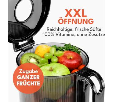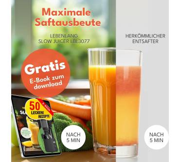 Gesunde Saftfreude. Der Entsafter überzeugt durch hohe Saftausbeute und leise Arbeitsweise. Er ist ideal für Gesundheitsbewusste, erfordert jedoch viel Zeit für die Vorbereitung und aufwendige Reinigung. Für Schnelllebige könnte dies ein Nachteil sein.