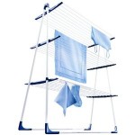 Geeignet für breite Wäschestücke und bis zu zwei oder sogar drei Waschmaschinenfüllungen, und dies auf einer trotz der extralangen Trockenstäbe immer noch relativ kleinen Grundfläche von 98 mal 61 Zentimeter: Auf den ersten Blick scheint der Leifheit alles richtig zu machen. Doch wie bei fast jedem Turmtrockner muss auch bei ihm mit Einschränkungen gerechnet werden. Die untere Ebene zum Beispiel hängt sehr tief und ist daher lediglich für kleine Wäschestücke gut, werden lange Hosen aufgehängt, fällt die weggeklappte mittlere Ebene weg, und bei dicken Wäschestücken kann unter Umständen nur jede zweite Trockenstange benutzt werden, da diese eng beieinander stehen – Kritikpunkte, die von Käufern des Turmtrockners angeführt werden. Einige bemängeln auch seine Standfestigkeit beziehungsweise Stabilität, so dass die Bewertungen des Leifheit recht unterschiedlich ausfallen. Vor der Anschaffung des rund 50 EUR (Amazon) teuren Haushalthelfers sollten die Vor- und Nachteile also genauestens gegeneinander abgewogen werden, um eine rundum perfekte Angelegenheit, sprich: um ein „Deluxe“-Produkt scheint es sich bei ihm nämlich trotz aller Vorzüge nicht unbedingt zu handeln.
