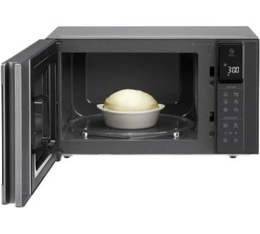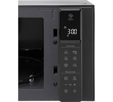 Die Mikrowelle mit Smart Inverter Technologie bietet bei kompakten Stellmaßen großzügige 25 Liter Kapazität und genügend Platz für sperrige Gerichte. Der antibakteriell beschichtete Garraum beinhaltet einen Glasdrehteller auf sechs Rollen in hexagonalem Muster für erhöhte Stabilität Ihrer Gefäße und Teller. Die Bedienung erfolgt Nutzern zufolge leicht verständlich mit Hilfe eines Touch-Displays mit LED Anzeige. Zur Vereinfachung haben Sie 28 vielseitige Automatikprogramme zur Verfügung. Darunter finden Sie Garprogramme mit Gewichtsautomatik, sowie Funktionen wie Joghurtzubereiter, Fritteuse, Aufwärmen. Mit der integrierten Grillfunktion gelingt Ihr Hähnchen saftig und knusprig. Eine praktische Schnellkochfunktion ermöglicht die Reduzierung der Garzeit für Ihre Speisen. Der Garraum ist mit weißen LEDs beleuchtet und Sie haben Ihre Speisen trotz geschlossener Mikrowellentür im Blick. Die Smart Inverter Technologie sorgt mit präziser Leistungssteuerung für ein gleichmäßiges und schnelles Aufheizen und Auftauen, was in Rezensionen bestätigt wird. Der Garraum lässt sich dank EasyClean-Innenbeschichtung einfach und schnell reinigen.