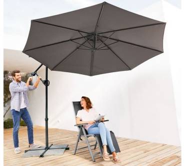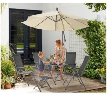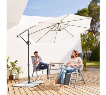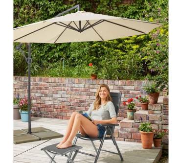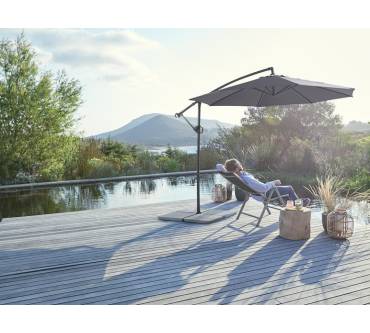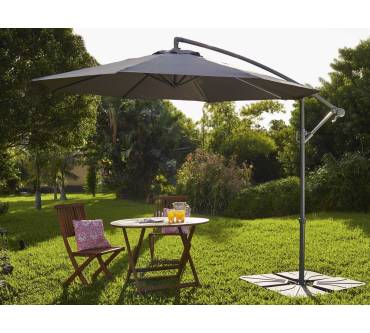 Pünktlich zur bevorstehenden Gartensaison bringt Lidl für Sie wieder den großzügigen Ampelschirm der Eigenmarke Florabest in die Filialen und den Online-Shop. Damit reagiert der Discounter auf die Zufriedenheit bisheriger Käufer. Diese loben vor allem das gute Preis-Leistungs-Verhältnis. Was können Sie noch von dem mit drei Meter Schirmdurchmesser üppigen Schattenspender erwarten? Zum Beispiel einen sehr guten Lichtschutzfaktor, der mit UPF 80 gemäß UV Standard 801 einen 80-fach längeren Aufenthalt in der Sonne gewährleistet, bevor Hautschäden drohen. Öffnen und Schließen des Schirms erfolgen mit einer Handkurbel. Dabei können Sie den Schattenwurf dank stufenlos verstellbarer Neigung und rundum schwenkbarem Arm ganz nach Ihren individuellen Bedürfnissen ausrichten. Die Beschichtung des Gewebes ist wasser-, schmutz- und ölabweisend. Mast und Gestänge sind aus einer stabilen Aluminium-Stahl-Konstruktion.