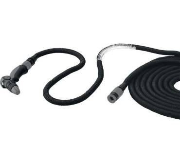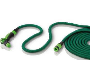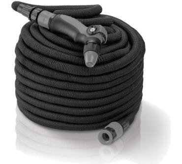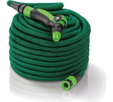 Der Flexi-Gartenschlauch macht sich mit einer Länge von 10 Meter zur Aufbewahrung angenehm klein und wird Sie mit einem Gewicht von 1,7 Kilogramm auch beim Tragen kaum überfordern. Unter Druck bringt es der Schlauch auf eine Länge von 30 Meter. Der Arbeitsdruck ist mit 4,5 bar für die meisten Wassernetze ausreichend, ein etwas größeres Polster für Wasserquellen mit höherem Druckniveau wäre allerdings wünschenswert. Der Schlauch ist ebenso wie das Zubehör aus witterungsbeständigen Kunststoffen gefertigt und zieht sich nach Gebrauch von selbst wieder zusammen. Anschlussmaterial ist sowohl für Halbzoll- als auch für Dreiviertelzoll-Hähne mit dabei. Eine zufriedenstellende Haltbarkeit vorausgesetzt, ist das Schlauch-Set zu einem attraktiven Preis zu haben.