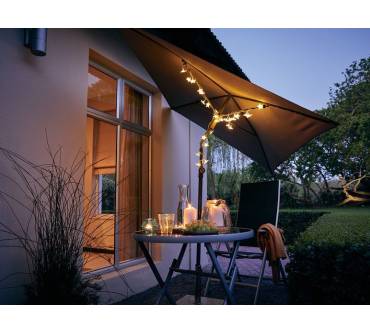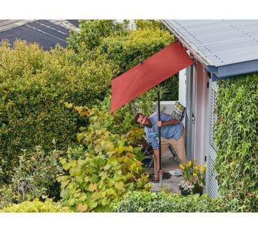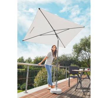 Mit dem rechteckigen Sonnenschirm der Lidl-Eigenmarke Florabest offeriert der Discounter einen großzügigen Schattenspender für Garten, Terrasse und Balkon. Bemerkenswert ist der hohe Lichtschutzfaktor 80. Dieser gibt an, wie viel länger Sie sich mit dem UV-Schutz in der Sonne aufhalten können, ohne Hautschäden davonzutragen. Ab UV-Schutzfaktor 50 (auch UPF = Ultraviolet Protection Factor) spricht man bei Sonnenschirmen von einem ausgezeichneten Schutz. Das Gewebe ist schmutz- und wasserabweisend. Bei Bedarf können Sie den Bezug aber auch abnehmen und waschen. Der Mast und die Streben sind aus Stahl, was Stabilität verspricht. Die Knickvorrichtung erlaubt drei verschiedene Positionen, so dass Sie den Schattenwurf optimal an den jeweiligen Sonnenstand anpassen können. Die Höhe ist dank teleskopierbarem Mast um maximal 40 Zentimeter variabel. Erhältlich ist der Schirm in den Farben Natur, Anthrazit und Terracotta.