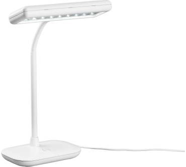 Die LED-Tageslichtleuchte des Herstellers Livarno, erhältlich bei Lidl, strahlt mit einer Farbtemperatur von 6.500 Kelvin und damit in Tageslichtqualität. Sie eignet sich aufgrund dessen vor allem für konzentriertes Arbeiten. Dank der hohen Blauwerte fördert es Ihre Konzentration und hält wach. Der Lichtstrom beträgt 800 Lumen. Dies entspricht in etwa der Helligkeit einer 60-Watt-Glühbirne. Für eine kompakte Schreibtischleuchte ist das sehr hell. Die integrierten LEDs bieten eine Lebensdauer von 25.000 Stunden. Das ist ein solider Durchschnittswert. In der Praxis dürften Sie mit einer Haltbarkeit von zwölf bis 15 Jahren rechnen, abhängig von der täglichen Nutzungsdauer. Dann ist die Leuchte allerdings hin, denn die LEDs lassen sich nicht austauschen. Für einen Preis von rund 18 Euro ist die Anschaffung dennoch zu empfehlen.