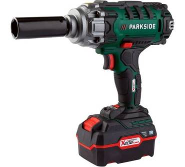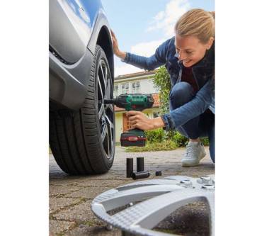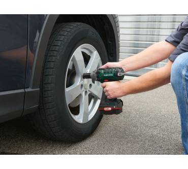 Der Schlagschrauber von Parkside bietet Ihnen zum Reifenwechsel und für andere Schraubarbeiten ein kraftvolles Drehmoment von bis zu 400 Newtonmeter. Damit können Sie den Radwechsel auch an großen Fahrzeugen in Angriff nehmen. Die Schlagzahl lässt sich stufenlos in dem Bereich unterhalb von 3.000 Schlägen pro Minute wählen. Das Drehmoment kann in fünf Stufen zwischen 50 und 400 Newtonmeter voreingestellt werden. Gespeist wird das Akkugerät von einem zeitgemäßen Lithium-Ionen-Akku, dessen Ladedauer mit 80 Minuten noch akzeptabel ausfällt. Mit einem Anschaffungspreis von etwa 70 Euro ist der Schlagschrauber besonders dann interessant, wenn Sie ein Auge auf Ihr Budget haben.