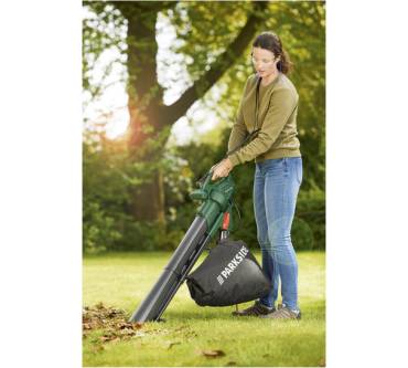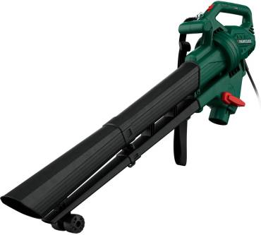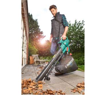 Mit dem preiswerten Elektro-Kombigerät von Parkside können Sie den Massen an Herbstlaub mit einem Gebläse und zuschaltbarem Häckselwerk zu Leibe rücken. Somit können Sie das zuvor zusammen geblasene Laub gleich einsaugen und schreddern, ohne es manuell zum Kompost zu bringen. Die Häckselrate beträgt 10:1, was angesichts des Preises in Ordnung ist. Die beiden Funktionen können Sie über einen Wahlschalter einstellen.