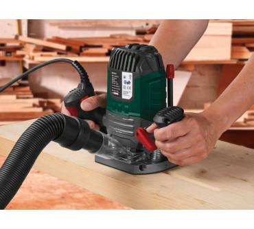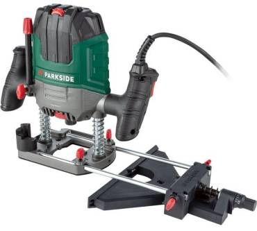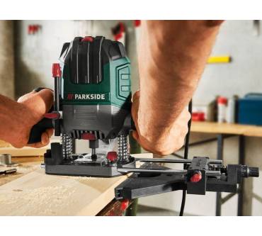 Mit einer Leistung von 1200 Watt ist die Oberfräse von Parkside dem Einsteigersegment zuzuordnen. Sie können die Fräse auch in einen Frästisch einbauen, die Leistung und der Hub von 55 Millimetern reichen dafür aus. Da die Maschine relativ klein ist, können Sie sie gut unter Kontrolle halten. Das Modell besitzt eine Feinjustage. Ein Parallelanschlag gehört ebenfalls zur Grundausstattung. Allerdings ist er vorrangig aus Kunststoff gearbeitet, wodurch er weniger robust und präzise wirkt. Für die ersten Schritte im Umgang mit einer Oberfräse sollte das Gerät aber vollkommen ausreichen.