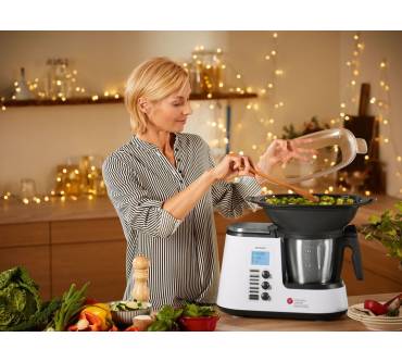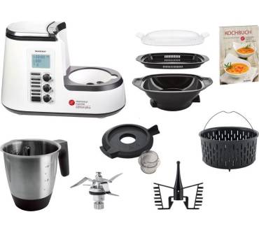 Die Monsieur Cuisine Édition Plus ist ein klassisches Einsteigergerät. Sie bietet eine ordentliche Ausstattung, die aber über den Standard nicht hinausgeht. Was angesichts des Preises von 199 Euro jedoch völlig in Ordnung ist. Gerade Anfänger dürfte es sogar freuen, dass sie nicht mit zahlreichen Funktionen und Programmen überfordert werden. Drei Automatikprogramme, dazu noch die Möglichkeit individueller Temperatur-, Geschwindigkeits- und Zeiteinstellungen - das war's schon. Und alles ist über eine intuitive und übersichtliche Bedienoberfläche einstellbar. Das mitgelieferte Zubehör ist nicht besonders üppig, reicht jedoch für die meisten Fälle aus. Da das Schwestermodell SKMK 1200 A1 technisch fast identisch ist, dürften auch die im Schnitt positiven Urteile der Zeitschriften für diese Variante gelten. Gleiches gilt aber auch für die Schwächen: die hohe Lautstärke des Lüfters und die wenigen Automatikprogramme. Wenn Sie gerne mehr Komfort und Ausstattung möchten, empfehlen wir Ihnen den gerade einmal 100 Euro teureren Monsieur Cuisine connect.
