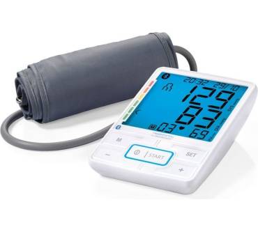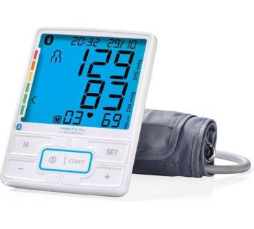 Das Oberarm-Blutdruckmessgerät SBM69 von Lidls Hausmarke Silvercrest ist vergleichsweise günstig zu haben und bietet einen hohen Funktionsumfang für die heimische Blutdruckkontrolle. Erwähnenswert ist zum einen die Universalmanschette, die bereits während des Aufpumpens misst und eine Sitzkontrolle beinhaltet. Das sorgt für ein sicheres und gleichzeitig bequemes Messerlebnis. Das große beleuchtete XL-Display stellt alle Messwerte gut leserlich dar. Ein Vorteil für Menschen mit eingeschränkter Sehfähigkeit. Mittels einer farbigen Ampelskala - dem sogenannten Risiko-Indikator - werden die ermittelten Daten eingestuft. Das Gerät warnt zudem vor eventuellen Herzrhythmusstörungen. Eine praktische Aufbewahrungstasche ist ebenfalls im Lieferumfang enthalten. Zwei Benutzer können je bis zu 100 Messwerte auf dem internen Speicher ablegen und sich bei Bedarf Durchschnittswerte anzeigen lassen. Als Zusatzfunktion können diese Messdaten via Bluetooth an die kostenlose „HealthForYou“-App gesendet werden. Das ist vor allem für Anwender sinnvoll, für die eine stetige Verlaufskontrolle unabdingbar ist. Denn über die App werden die Messwerte grafisch aufbereitet, sodass Abweichungen direkt sichtbar werden. Die App ist mit allen „HealthForYou“-Geräten kompatibel, allerdings wird die Konnektivität des Öfteren bemängelt. Da das Blutdruckmessgerät aber auch komplett ohne App-Anbindung nutzbar ist, hat Lidl hier ein solides Angebot im Programm. Wenn Sie ein Mehrpersonen-Haushalt sind, die hier gebotenen zwei Benutzerspeicher also zu gering ausfallen, hat Lidl einen identischen Blutdruckmesser im Angebot, der allerdings für vier Anwender ausgelegt ist. Diese können jedoch nur bis zu 30 Messwerte intern speichern.
