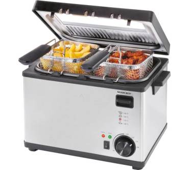 Vielseitige Frittierlösung. Die Fritteuse mit drei Körben ermöglicht effizientes Frittieren verschiedener Lebensmittel gleichzeitig. Ihre hohe Leistung und einfache Reinigung sind große Pluspunkte, während die Größe der Körbe sowohl für kleine als auch große Portionen geeignet ist.