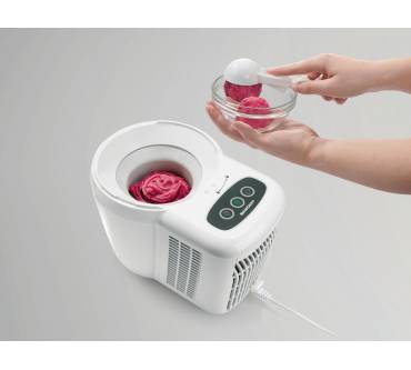Wer eine Eismaschine mit Kompressor aus dem Einstiegssegment sucht, kann hier richtig sein. Das Modell SEM 90 C3 von Lidl / Silvercrest bietet 700 Milliliter Fassungsvermögen und eignet sich damit für die Herstellung von 300 Millilitern Eis. Durch die geringe Kapazität passt sie am besten in den Single- oder Paar-Haushalt. Die Bedienung ist simpel: Sie aktivieren die Maschine und entscheiden per Tastendruck über die gewünschte Konsistenz. Der Einfüllschacht ist großzügig bemessen, sodass Sie auch feste Zutaten wie Früchte bequem hinzufügen können. Eine „Nachlegefunktion“ in Form einer kleineren Öffnung gibt es jedoch nicht. Nach getaner Arbeit können Sie das Zubehör praktischerweise in der Spülmaschine reinigen. Vom Einfüllen bis zum Ergebnis kann es allerdings etwas dauern. Die Maschine arbeitet mit nur 90 Watt, was selbst für ein solches kompaktes Gerät wenig ist. Es ist daher zu erwarten, dass die Zubereitung dauert – und zwar noch länger als die ausgelobten maximal 80 Minuten. Wer warten kann und eine Kompressormaschine für gelegentliche kleine Mengen sucht, kann hier für einen kleinen Preis von rund 70 Euro zugreifen.