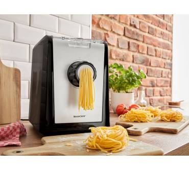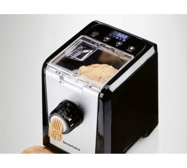 Fans von frischer Pasta bekommen mit dieser Maschine von Lidl / Silvercrest eine vielseitige Option zum gewohnt kleinen Preis. Mit dabei sind 8 Formscheiben für Spaghetti, Fettucine & Co. Zusätzlich steht Ihnen ein Ravioliformer zur Verfügung. Das ist mehr, als einige hochpreisigere Modelle anbieten. Der Teig wird auf Tastendruck automatisch vorgeknetet, die fertigen Nudeln langsam ausgegeben. Sie können aus den Portionsgrößen 250 und 500 Gramm Mehl wählen, einige Nutzer finden die Menge allerdings für mehr als 2 Personen zu gering - insbesondere wenn man sein Italienflair als Hauptspeise konsumieren möchte. Hier sind mehrere Durchgängen nötig. Die Handhabung ist auch für Kochmuffel einfach zu managen, ein Rezeptheft liegt bei und die Restlaufzeit sehen Sie gut lesbar am LC-Display.
