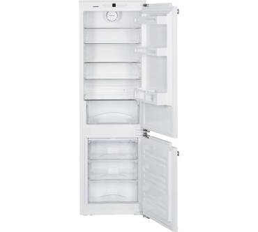 Die Einbau-Gefrierkombination von Liebherr präsentiert sich technisch auf der Höhe der Zeit. Zwei getrennte Kühlkreisläufe, die sich auch separat steuern lassen, sorgen im Kühl- sowie im Gefrierteil für die gewünschten Temperaturverhältnisse. Nutzerfreundlichkeit wird im Gefrierteil durch ein No-Frost-System ebenso erreicht wie durch entnehmbare Einlegeböden, die Sie individuell platzieren können. Im Kühlteil sorgt eine Umluft-Funktion für ausgewogene Temperaturverhältnisse. Während das Gefriervermögen mit 10 Kilogramm pro 24 Stunden großzügig ausfällt, bewegt sich die Überbrückung von Stromausfällen mit 15 Stunden am unteren Ende des akzeptablen Bereichs. Vorbildlich ist das Warnsystem bei Kälteverlust gestaltet. Bleibt eine der beiden Türen länger als eine Minute geöffnet, warnt Sie das Gerät vor unnötigen Zusatzkosten durch Kälteverluste.