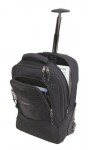 In den äußeren Abmessungen erreicht der Trolley 395 x 145 x 465 Millimeter, ein gepolstertes Laptopfach von 330 x 60 x 315 Millimetern fasst Laptops bis zu einer Größe von 19 Zoll, und wie viele der heutigen Trolleys - zumindest bei den hochwertigen Modellen - kann auch der Lightpak mit einer per Reißverschlussöffnung erweiterbaren Dehnungsfalte aufwarten. Gerollt wird auf Inlinerrollen mit Kugellager, die gute, weil leicht- und gleichläufige Fahreigenschaften versprechen. Im Trolleymodus wiederum kann der Teleskopgriff auf bis zu 92 Zentimeter ausgezogen werden, allerdings scheint es bei großen Menschen hier schon Probleme zu geben, wie ausgesprochen kritische Kundenbewertungen zeigen. Zwei gepolsterte und verstellbare Rückentragegurte am Rücken des Trolleys runden das Komfortprogramm ideal ab.