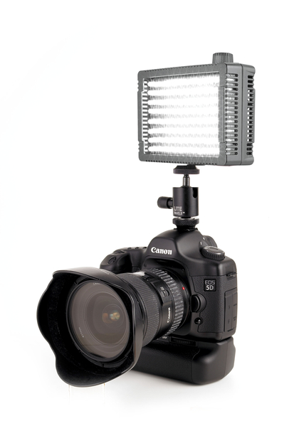 Das Bogen Imaging Litepanels MicroPro wird in den Blitzschuh der Kamera gesteckt und sitzt auf einem Kugelgelenk, wodurch das Licht in jede beliebige Richtung gelenkt werden kann. Außerdem verfügt es über ein integriertes ¼ Zoll Innengewinde, wodurch es auch auf einem Stativ montiert werden kann. Das Lightpanels MicroPro kann mit 6 E2 Lithium AA Batterien betrieben werden und soll dann etwa eine Laufzeit von 5 Stunden gewähren. Optional sind auch ein Netzteil und Akku-Adapter erhältlich.Das Bogen Imaging Litepanels MicroPro ist sehr gut ausgestattet, allerdings auch nicht ganz billig: Es wird für 500 Euro angeboten. Vor allem die stufenlose Regulierung der Helligkeit macht die Leuchte attraktiv. Tests ähnlicher Lampen haben aber ergeben, dass die Farbtemperatur von LEDs oft etwas vom Nennwert abweicht.