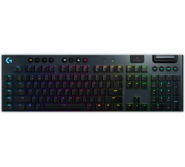 Die G915 ist eine mechanische Gaming-Tastatur der Extraklasse. Bereits der horrende Preis lässt ein sattes Feature-Paket vermuten. Tatsächlich ist die Logitech mit nur 22 mm Höhe eine der flachsten Mechanischen am Markt. Sie kommt in drei Ausführungen mit unterschiedlichen hauseigenen Switches: GL Clicky mit hörbarem Klick, GL Tactile ohne Klick aber dennoch spürbarem Druckpunkt sowie GL Linear mit fließender Schaltcharakteristik. Die RGB-Beleuchtung können Sie umfassend programmieren und dank Lightsync auch mit weiterer Logitech-Peripherie synchronisieren. Die Tastatur erhält ihren Zusatz Lightspeed aufgrund der extrem schnellen Signalübertragung, wodurch ein möglichst verlustfreies Umsetzen der Klicks garantiert wird. Wirklich spürbar ist das in der Praxis jedoch nicht. Die Logitech läuft kabellos mittels USB-Dongle und kann ebenfalls mit Kabel betrieben sowie gleichzeitig aufgeladen werden. Sie können die freien G-Tasten individuell mit Makros belegen und zwei Beleuchtungsprofile hinterlegen – dank integriertem Speicher sind diese dann auch an fremden Rechnern abrufbar.