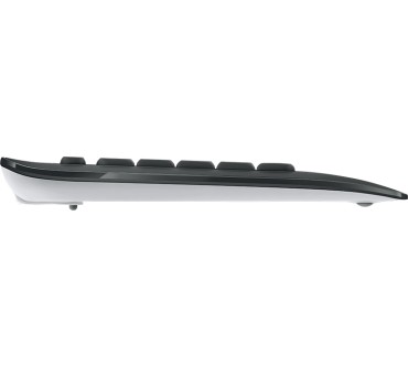 Mit dem Logitech MK540 erhalten Sie ein sehr solides und simples Maus-Tastatur-Set, das sich in Büros am wohlsten fühlt. Sowohl die Tastatur als auch die Maus arbeiten komplett kabellos und liefern glücklicherweise eine sehr lange Laufzeit. Die Tastatur hält laut Logitech etwa 36 Monate und die Maus rund 18 Monate durch – das sind gut gemeinte Theoriewerte. In der Praxis sollten Sie sich auf ein gutes Stück weniger einstellen. Mithilfe einer, wenn auch recht flachen Handballenauflage ein wenig Komfort für Vieltipper. Um wirklich ergonomisch zu sein, hätte sie jedoch etwas größer in der Tiefe ausfallen müssen. Die Tasten sind relativ flach und auf eine geringe Geräuschentwicklung beim Tippen ausgelegt. Die Maus ist symmetrisch, also sowohl für Rechts- als auch für Linkshänder geeignet. Sie ist allerdings spärlich ausgestattet und bietet neben einem klickbaren Mausrad keinerlei Seiten- oder Sondertasten. Für den Preis ist das ein recht ordentliches Set für moderne Arbeitsplätze, an denen Kabel nicht gern gesehen sind.